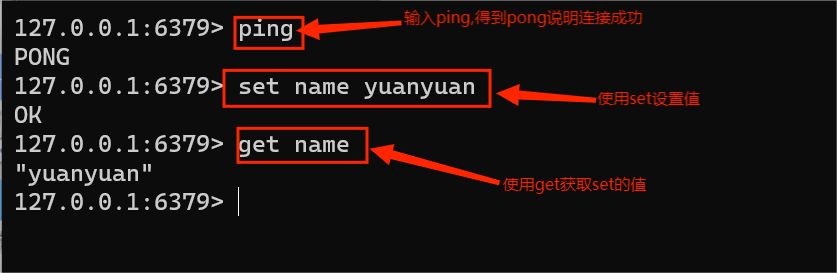 wq!启动连接Redis服务并测试(这里我换了端口,因为6379被docker中的Redis占用了)