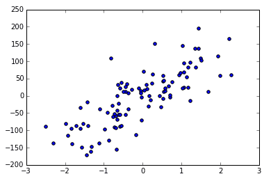 1 | X, y = datasets.make_regression(n_samples=100, n_features=1, n_targets=1, noise=50) |